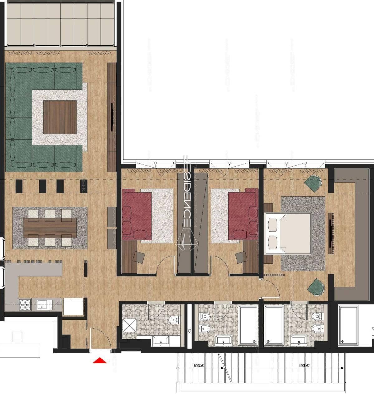 Contemporary three bedroom apartment in perfect building